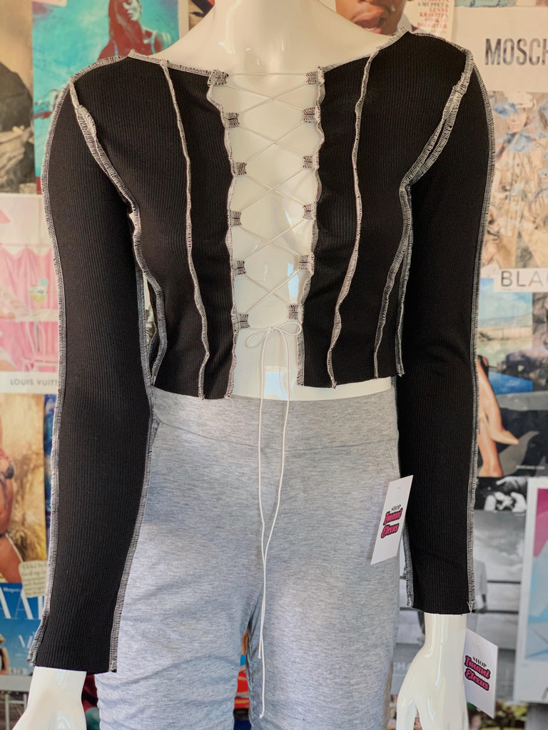 "Icy Wifey" Lace-Up Crop Top - Yellow