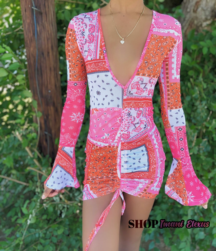 “Pretty In Paisley” Bell Sleeve Bodycon Dress - Blue